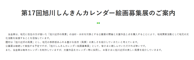 旭川信用金庫 第17回旭川しんきんカレンダー絵画募集展のご案内